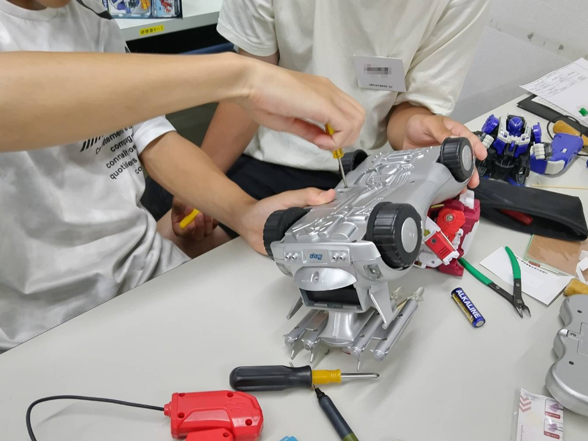 2025年7月24日(木)、ラポールひらかたにて夏のボランティア体験(ひらかた市民活動支援センター主催、おもちゃ病院ひらかた運営)を実施しました。 参加メンバーは男女合わせて4名で、講師はおもちゃ病院ひらかた代表・岩本と由井(よしい)Dr.、豊田Dr.、他が務めさせていただきました。 最初に岩本講師からおもちゃ修理の概要から基本的な技術の説明、そして工具類の使い方などをレクチャー、そのあとはプラレール、電子楽器やぬいぐるみなど、いろいろなおもちゃの修理を体験して頂きました。 プラレールの修理では女子受講生が機関車のモーター分解掃除を行い(もちろん未経験です)そのあとナント再組立し動きました!。これにはびっくりしました。 このほか、持ってこられたロボットやラジコンカーなど難易度の高いおもちゃを講師のアドバイスを受けながら修理されるなど、皆さんの熱意とチャレンジ精神に感心させられた一日でした。 どうか参加された皆さんにとって今回の体験が少しでもボランティア活動や新しい世界に繋がればと願っています。 (下の画像はクリックすると拡大してごらんいただけます) |